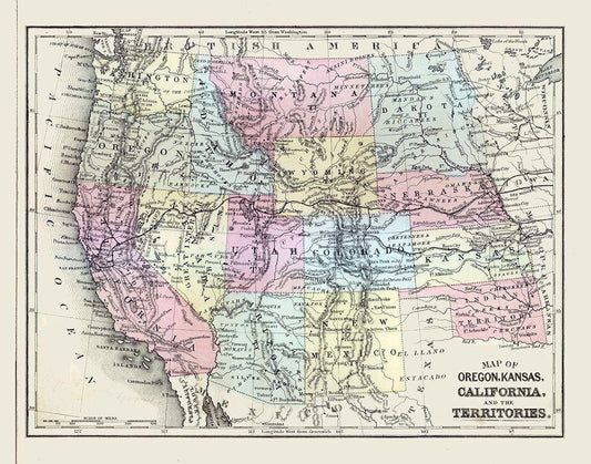 Western United States - Mitchell 1877 White Modern Wood Framed Art Print with Double Matting by Mitchell