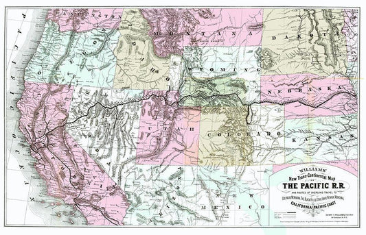 Pacific Railroad with Routes to California 1877 White Modern Wood Framed Art Print with Double Matting by Williams