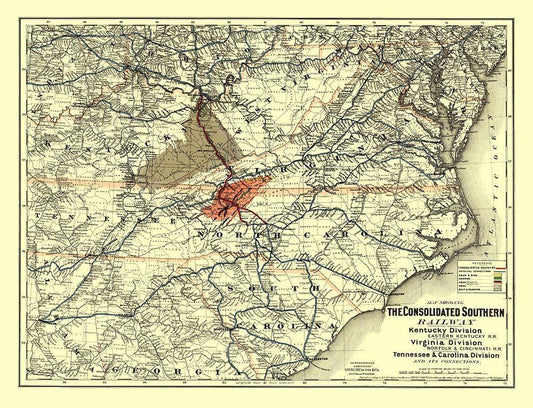 Consolidated Southern Railway - Colton 1883 White Modern Wood Framed Art Print with Double Matting by Colton