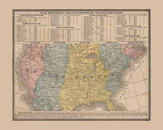 Divisions of Standard Time - Cram 1888 White Modern Wood Framed Art Print with Double Matting by Cram