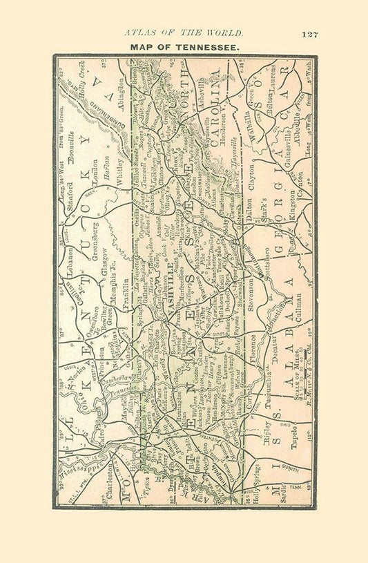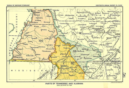 Tennessee - Alabama - Hoen 1896 White Modern Wood Framed Art Print with Double Matting by Hoen