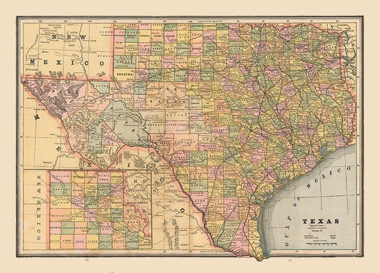 Texas, United States - Cram 1888 White Modern Wood Framed Art Print with Double Matting by Cram