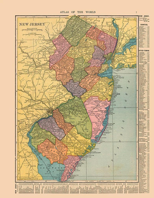 New Jersey - Alden 1886 White Modern Wood Framed Art Print with Double Matting by Alden