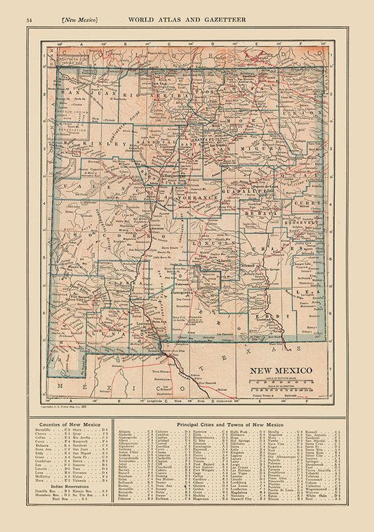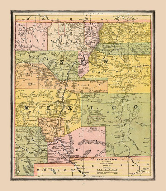 New Mexico, United States - Cram 1888 White Modern Wood Framed Art Print with Double Matting by Cram