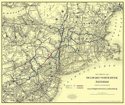 Delaware and North River Railroad - Colton 1890 White Modern Wood Framed Art Print with Double Matting by Colton