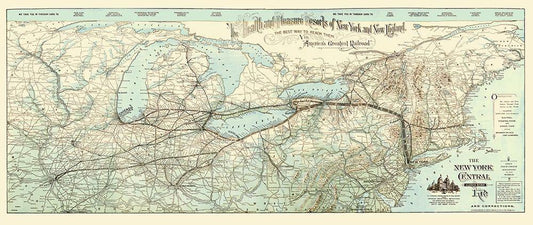 New York Central and Hudson River Railroad 1893 White Modern Wood Framed Art Print with Double Matting by Matthews