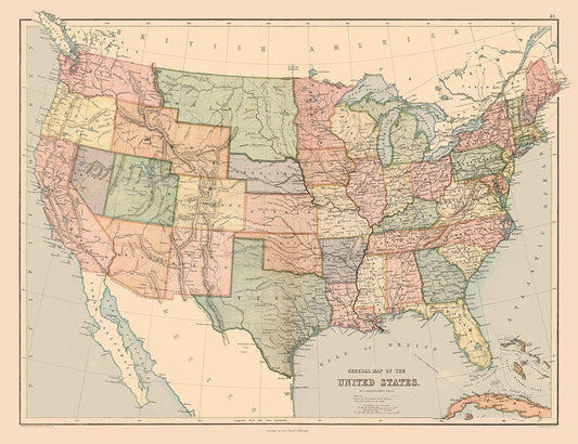 General Map of US - Black 1867 White Modern Wood Framed Art Print with Double Matting by Black