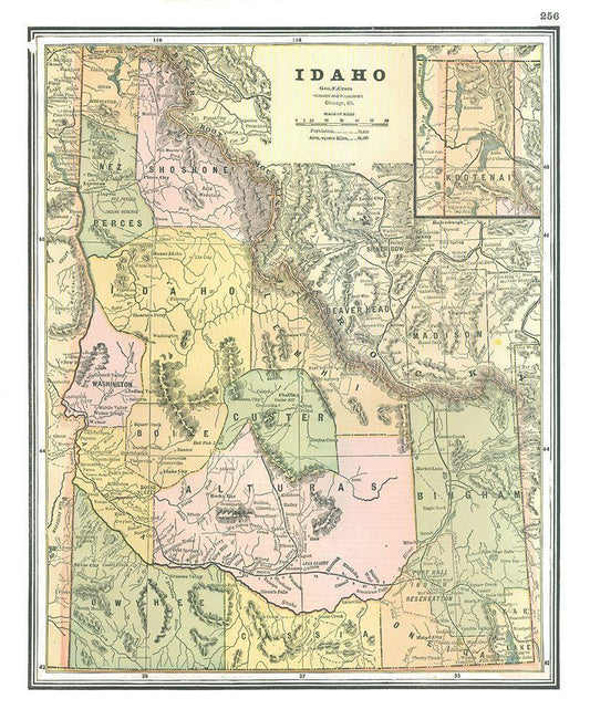 Idaho - Cram 1892 White Modern Wood Framed Art Print with Double Matting by Cram
