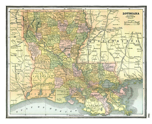 Louisiana - Johnson 1888 White Modern Wood Framed Art Print with Double Matting by Johnson