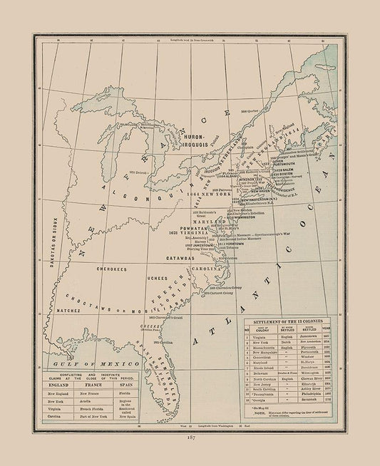 Colonial Indian Nations - Cram 1892 White Modern Wood Framed Art Print with Double Matting by Cram