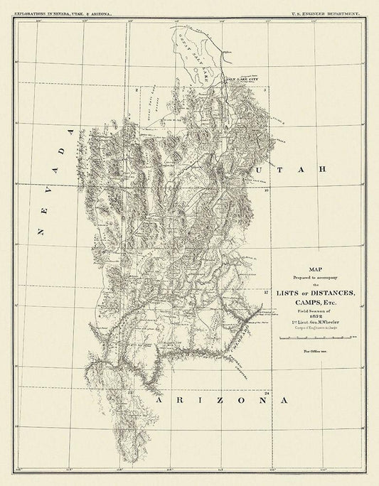 Grand Canyon Camp District - Wheeler 1872 White Modern Wood Framed Art Print with Double Matting by Wheeler