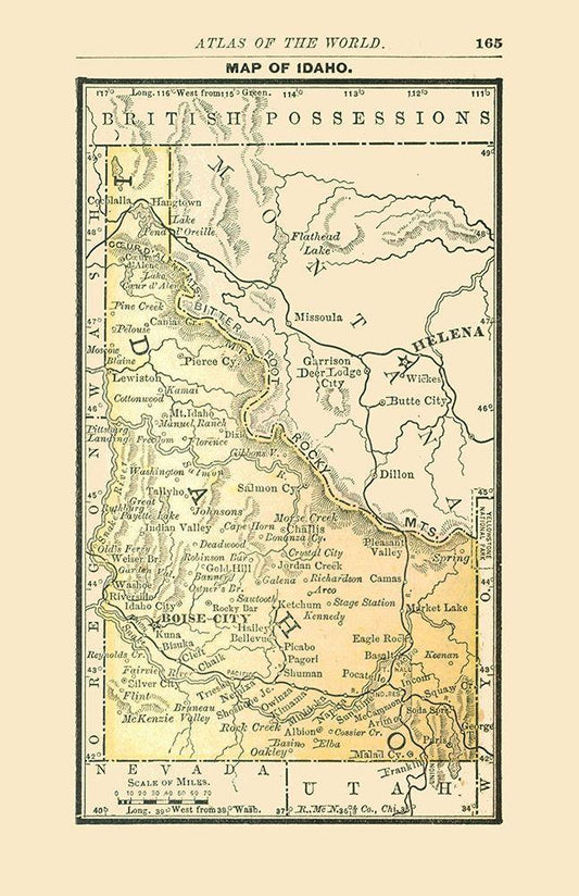 Idaho, United States - Cram 1888 White Modern Wood Framed Art Print with Double Matting by Cram