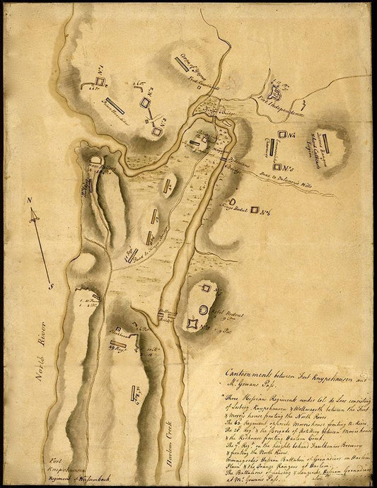 British Troops on Fort Washington Manhattan Island 1778 White Modern Wood Framed Art Print with Double Matting by Vintage Maps