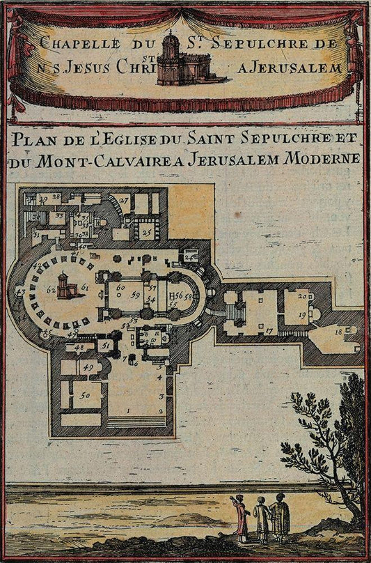 Antique Map of Jerusalem White Modern Wood Framed Art Print with Double Matting by Vintage Maps