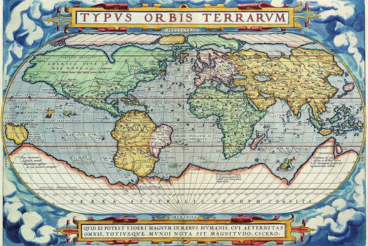 Typus Orbis Terrarum from the Theatre of the World in Apian Projection White Modern Wood Framed Art Print with Double Matting by Ortelius, Abraham