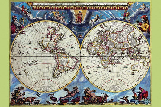 Stereographic Map of the World Theatrum Orbis Terrarum White Modern Wood Framed Art Print with Double Matting by Blaeu, Joan