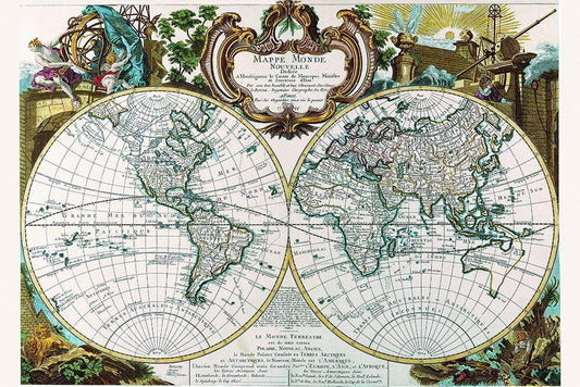 Mappa Monde Carte Universelle de la terre White Modern Wood Framed Art Print with Double Matting by Nolin, Jean Baptiste