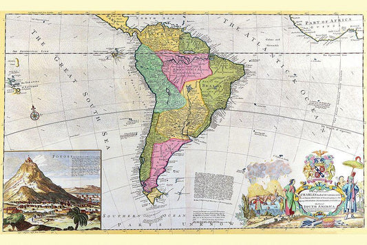 Antique Map of South America White Modern Wood Framed Art Print with Double Matting by Moll, Hermann