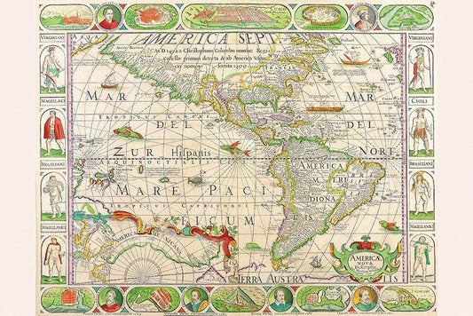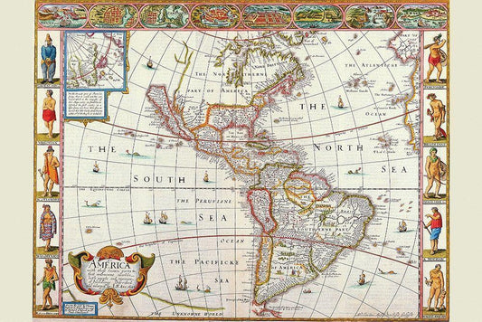 The Americas at the Time of Columbus Printed in 1658 White Modern Wood Framed Art Print with Double Matting by Visscher, Nicolas