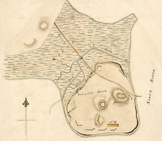 Pauluss Hook and fortifications 1778 White Modern Wood Framed Art Print with Double Matting by Vintage Maps