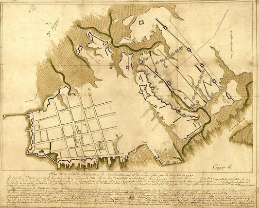 British Defenses at Charlestown 1780 White Modern Wood Framed Art Print with Double Matting by Vintage Maps