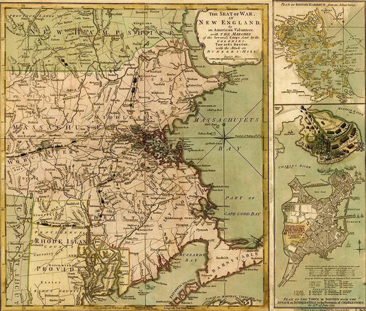 Seat of War with the attack on Bunker Hill White Modern Wood Framed Art Print with Double Matting by Vintage Maps