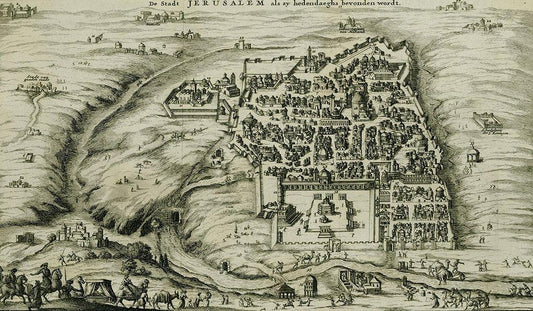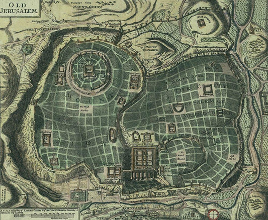 Modern Antique Map of Jerusalem White Modern Wood Framed Art Print with Double Matting by Vintage Maps