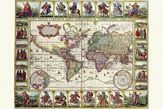 World Map with Figural Representations of the Worlds Peoples White Modern Wood Framed Art Print with Double Matting by Seney, John