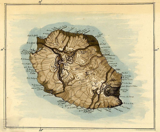 Volcano on Bourbon 1803 White Modern Wood Framed Art Print with Double Matting by Vintage Maps