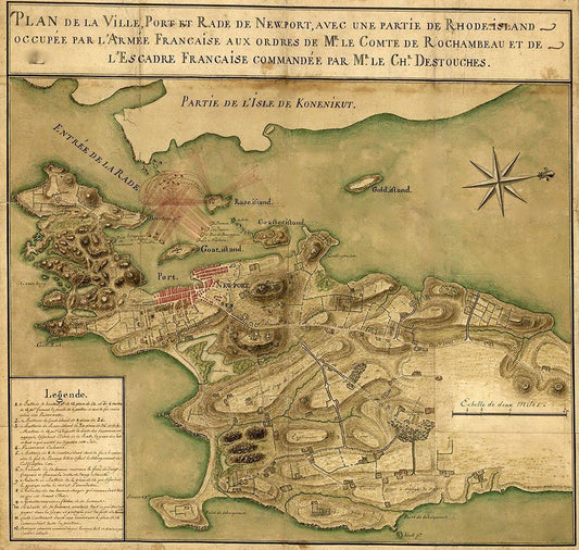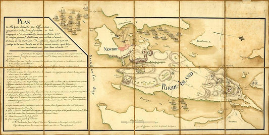 French Fleet and Colonial Troops under General Sullivan in Rhode Island 1778 White Modern Wood Framed Art Print with Double Matting by Vintage Maps