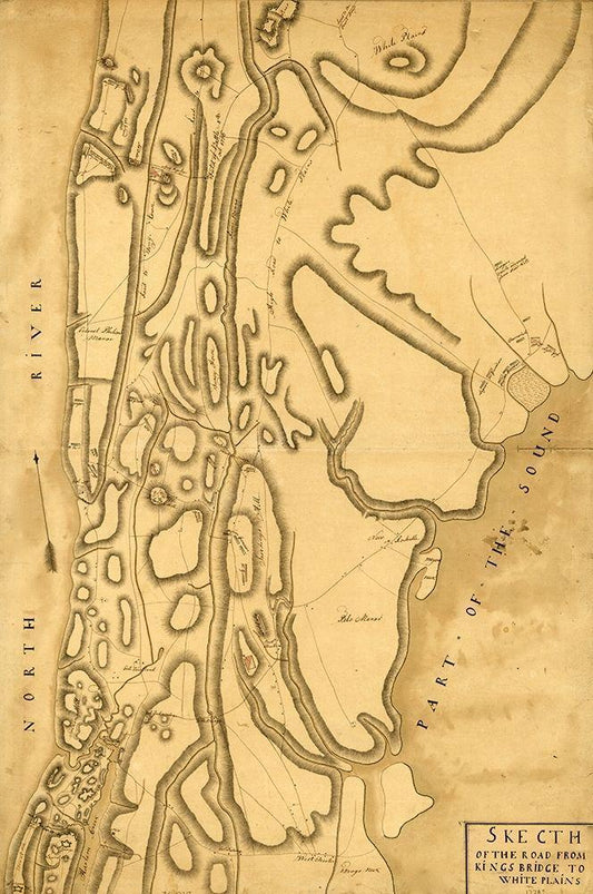 Road from Kings Bridge to White Plains 1778 White Modern Wood Framed Art Print with Double Matting by Vintage Maps