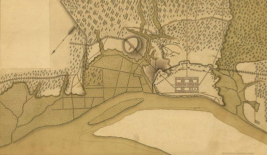 Richmond Defensive fort on Staten Island 1779 White Modern Wood Framed Art Print with Double Matting by Vintage Maps