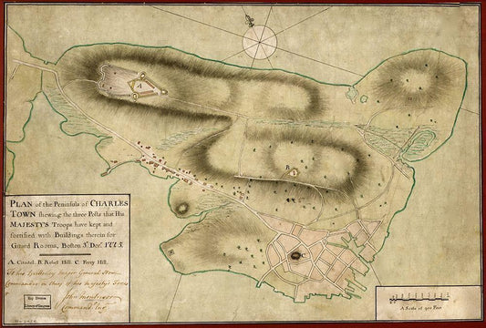 Bunker Hill 1775 White Modern Wood Framed Art Print with Double Matting by Vintage Maps