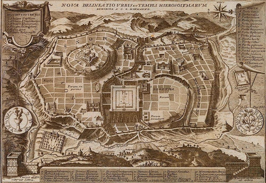 Plan of Jerusalem White Modern Wood Framed Art Print with Double Matting by Vintage Maps