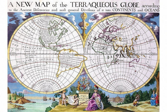 Stereographic Projection of the World with Latitude and Longitudinal lines White Modern Wood Framed Art Print with Double Matting by Wells, Edward