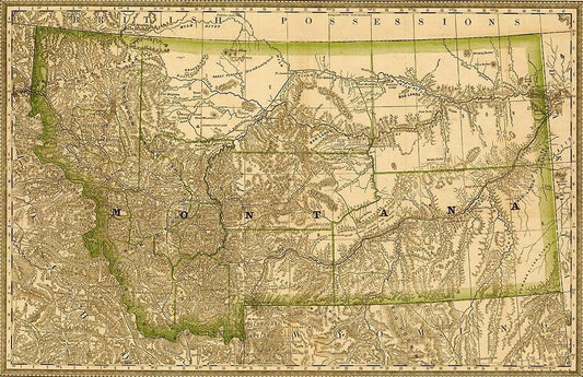 Montana 1881 White Modern Wood Framed Art Print with Double Matting by Vintage Maps