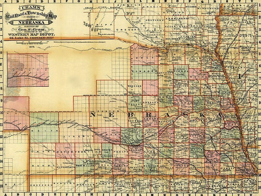 Nebraska 1878 White Modern Wood Framed Art Print with Double Matting by Vintage Maps