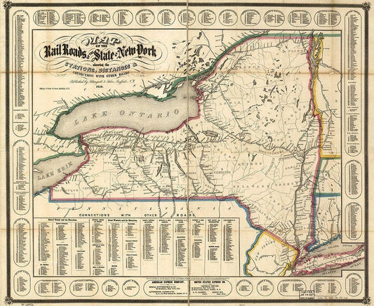 New York showing the stations distances and connections with other roads 1858 White Modern Wood Framed Art Print with Double Matting by Vintage Maps
