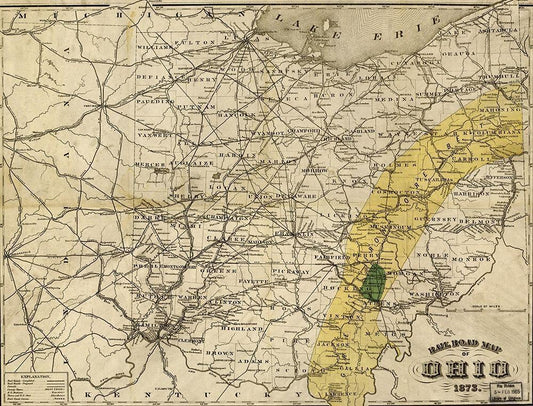 Ohio 1873 White Modern Wood Framed Art Print with Double Matting by Vintage Maps