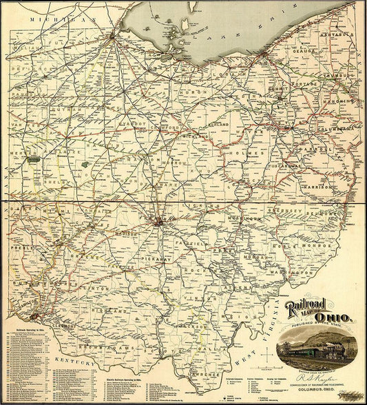 Wheeling and Cincinnati Mineral Railway 1882 White Modern Wood Framed Art Print with Double Matting by Vintage Maps