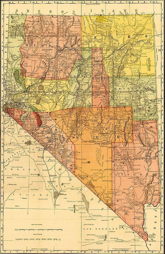 Nevada 1893 White Modern Wood Framed Art Print with Double Matting by Vintage Maps