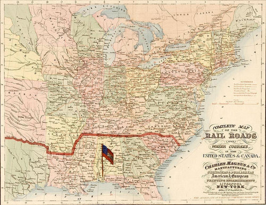 Railroads and water courses in the United Sates and Canada White Modern Wood Framed Art Print with Double Matting by Vintage Maps