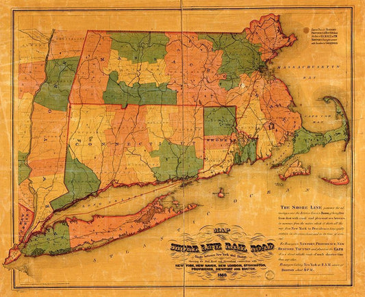 Shore Line 1860 White Modern Wood Framed Art Print with Double Matting by Vintage Maps