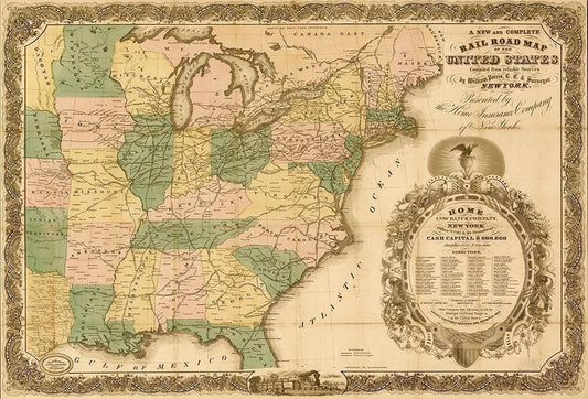 Railroad map of the United States 1858 White Modern Wood Framed Art Print with Double Matting by Vintage Maps