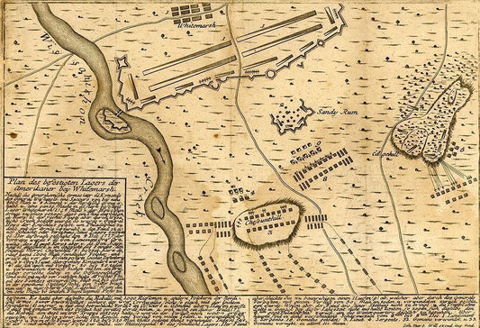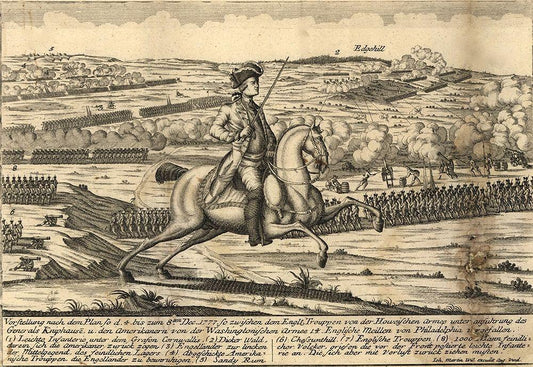 English General Howes Troops with German General Knypehausen 1777 White Modern Wood Framed Art Print with Double Matting by Vintage Maps