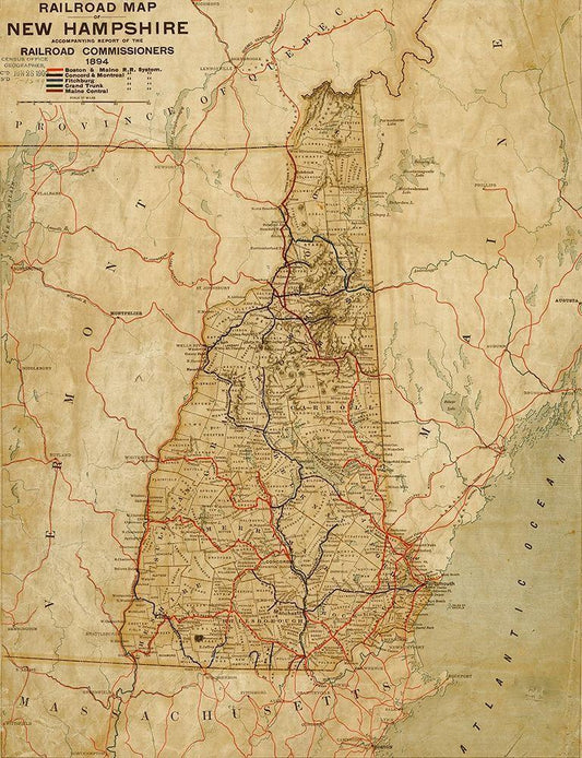 New Hampshire 1894 White Modern Wood Framed Art Print with Double Matting by Vintage Maps