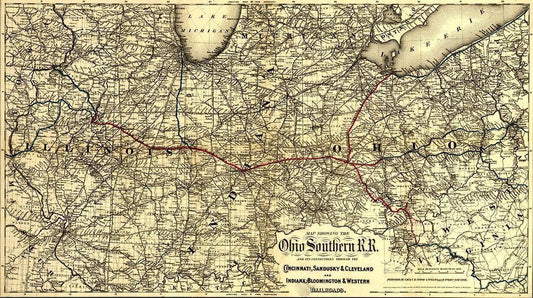 Ohio Southern 1881 White Modern Wood Framed Art Print with Double Matting by Vintage Maps