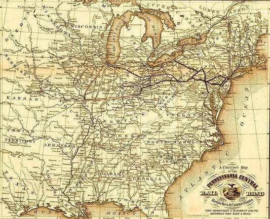 Pennsylvania Central 1854 White Modern Wood Framed Art Print with Double Matting by Vintage Maps