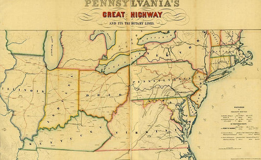 Pennsylvanias great highway and its tributary lines 1850 White Modern Wood Framed Art Print with Double Matting by Vintage Maps