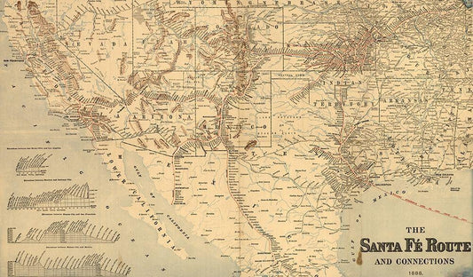 Atchison Topeka and Santa Fé Railroad White Modern Wood Framed Art Print with Double Matting by Vintage Maps